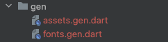 아래 커맨드를 실행하면 pubspec.yaml에 설정한 경로로 dart file이 생성된다. 만약에 경로를 지정하지 않았다면 lib/gen/에 file이 생성된 것을 확인할 수 있을 것이다.