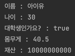 System.out.println("이름 : " + name);