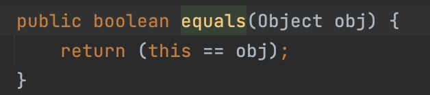 equals()를 오버라이딩하지 않으면 위와 같이 "==" 연산자를 통해 주소를 참조하여 값을 리턴하기 때문에 마찬가지로 false가 출력된다.
